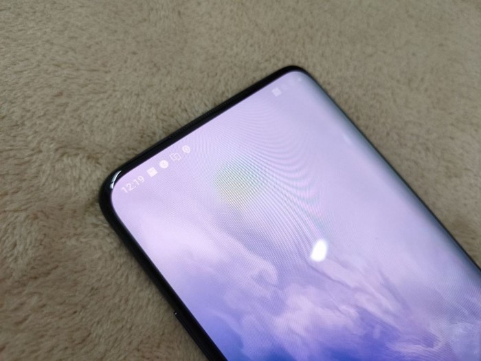 从基本规格上来看,三星显示为一加 7 Pro 定制了一块 6.67(圆角计算 6.46)英寸,比例为 19.5:9 的 Fluid AMOLED 屏幕,3120 1440 分辨率,90Hz 刷新率,激发亮度 800nits。和三星自家 S10+ 的屏幕基本上是不相上下。S10+ 激发亮度更高,但手动拉到最高亮度两者两者基本持平。