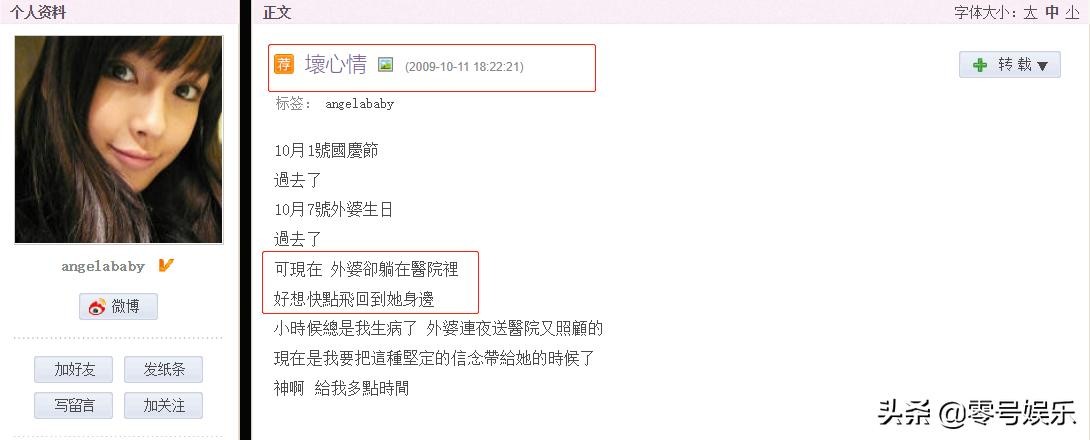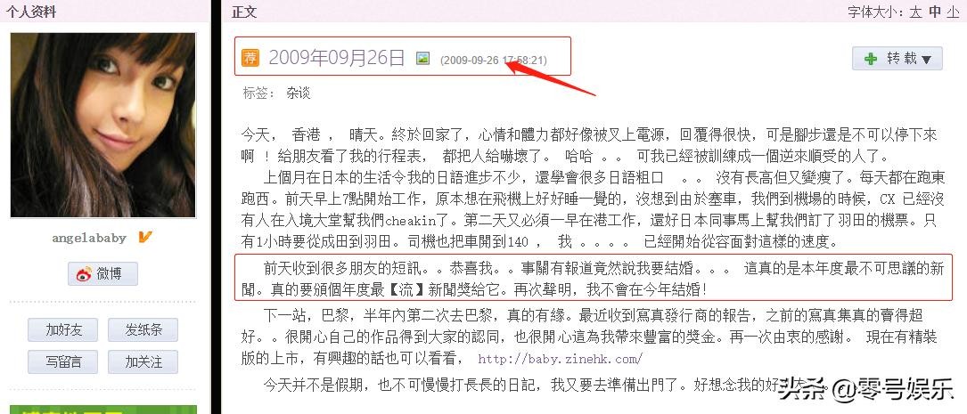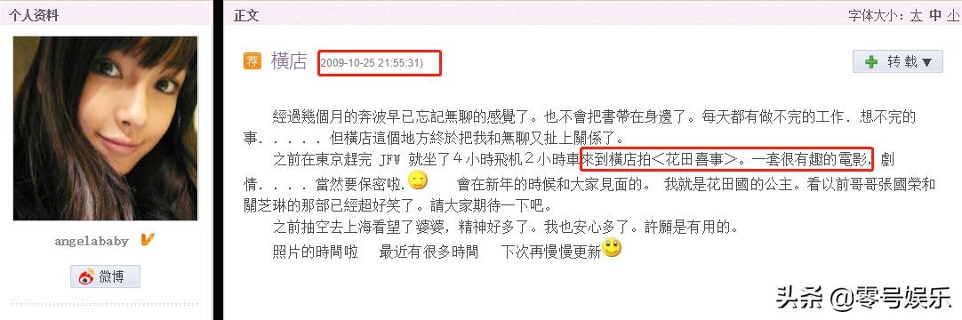 Angelababy在2009年10月25日的博客,也印证了这个说法: