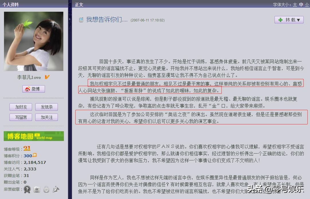 可众所周知,香港的娱乐媒体大大小小上千家,其中不乏夸大、捏造事实的小报。而且,当年面对其他娱乐媒体的围追堵截,李菲儿一直没有证实所谓的媒体专访和照片的真实性!