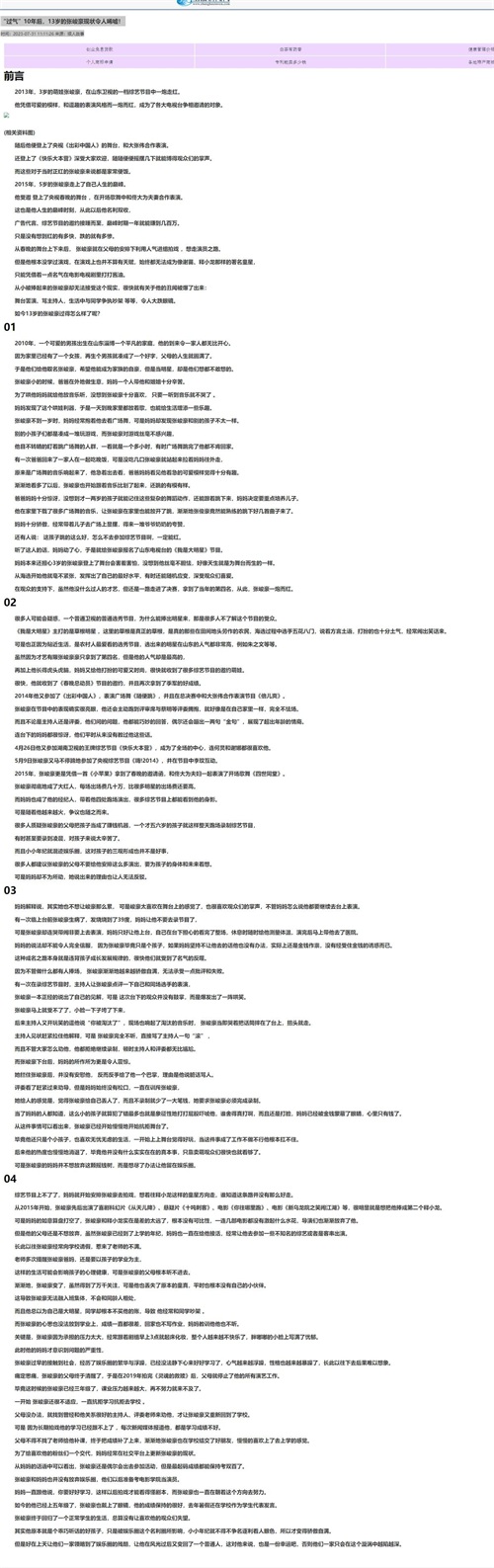 明星的光环早早的就扣到了他的身上,父母也通过他大赚了一笔。但还有一句话叫站得越高跌得越惨,对于一个孩子来说,早早的崛起又迅速跌落,会给这个孩子会带来什么样的发展和变化?