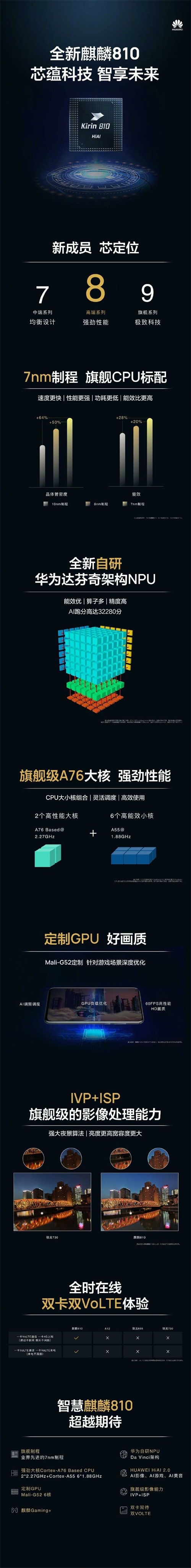 这次麒麟810芯片具体技术细节如何,让我们根据华为官方的介绍图片来深入了解一下麒麟810芯片: