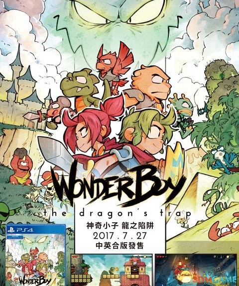 由 H2 INTERACTIVE、ARC SYSTEM WORKS、DotEmu 发行的 PS4《神奇小子 龙之陷阱(Wonder Boy III: The Dragon's Trap) 》动作冒险类游戏。本作品由 1989 年登录 SEGA Master System 发行的同名游戏为基础,并重新制作以及中文化。香港地区将由 GSE 代理发售,台湾地区由杰仕登代理,发售日期确定为 2017 年 7 月 27 日,建议售价HKD 188/NTD 790。