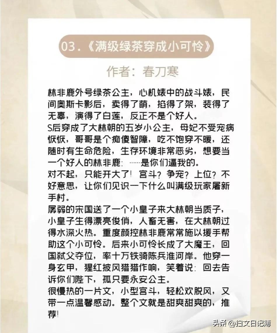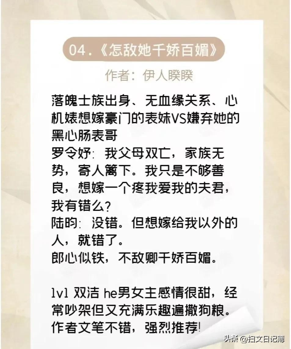 03.《满级绿茶穿成小可怜》作者:春刀寒04.《怎敌她千娇百媚》作者:伊人睽睽