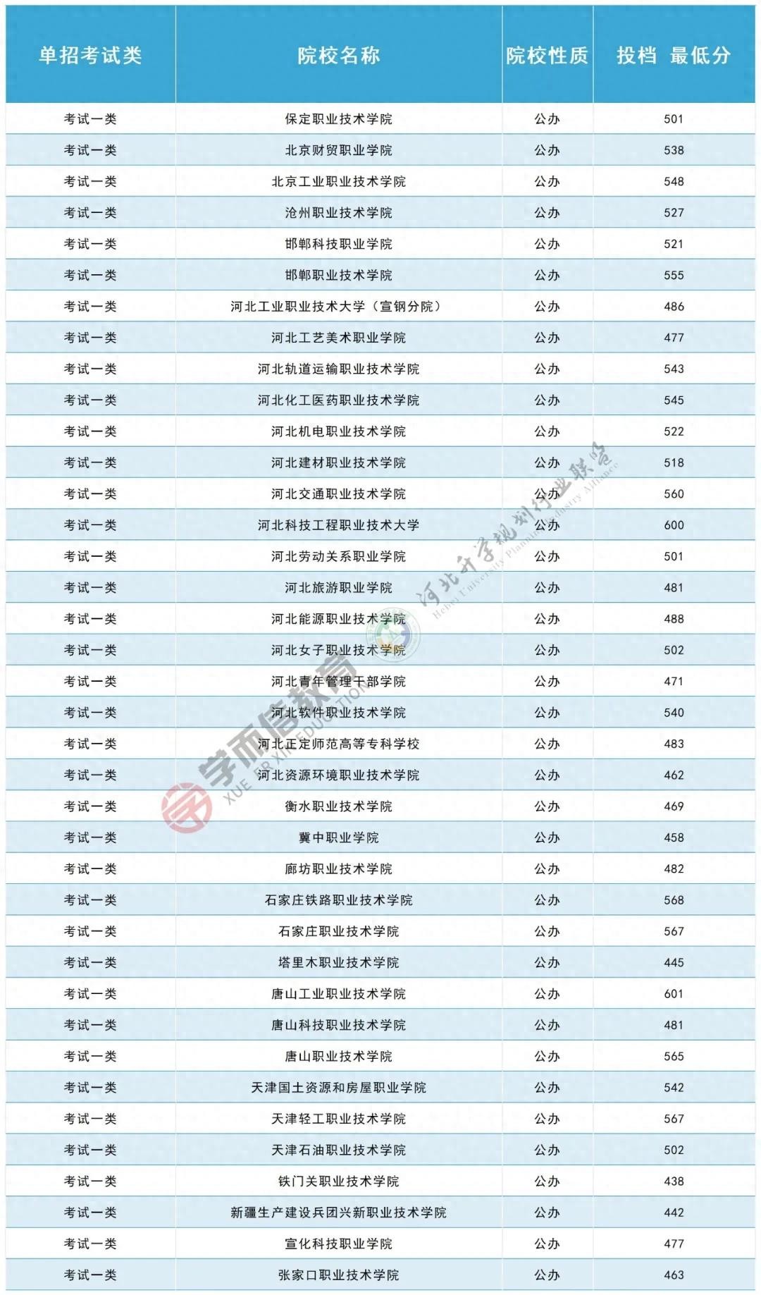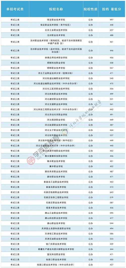 【数据参考】河北高职单招公办院校录取分数线全知道!