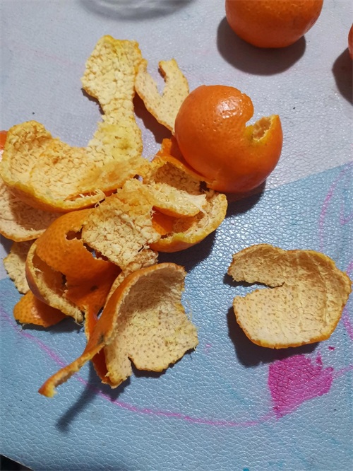 第二步:将切开的橘子皮放进一个空干净的罐头瓶子中,放一半或者三分之一就行。