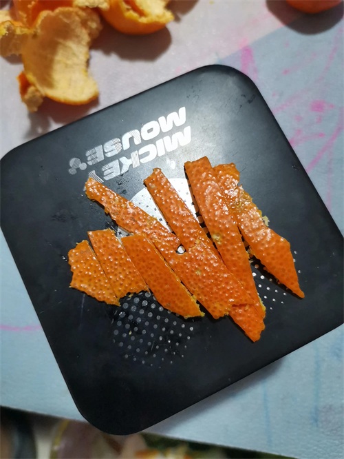 第一步:橘子皮或者柚子皮切成丝。