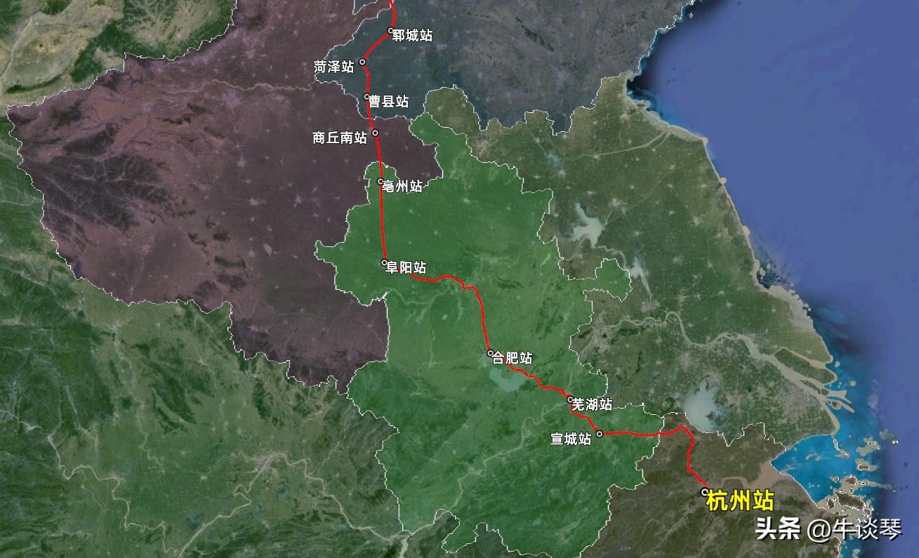 K1109次列车运行线路图:北京丰台开往浙江杭州