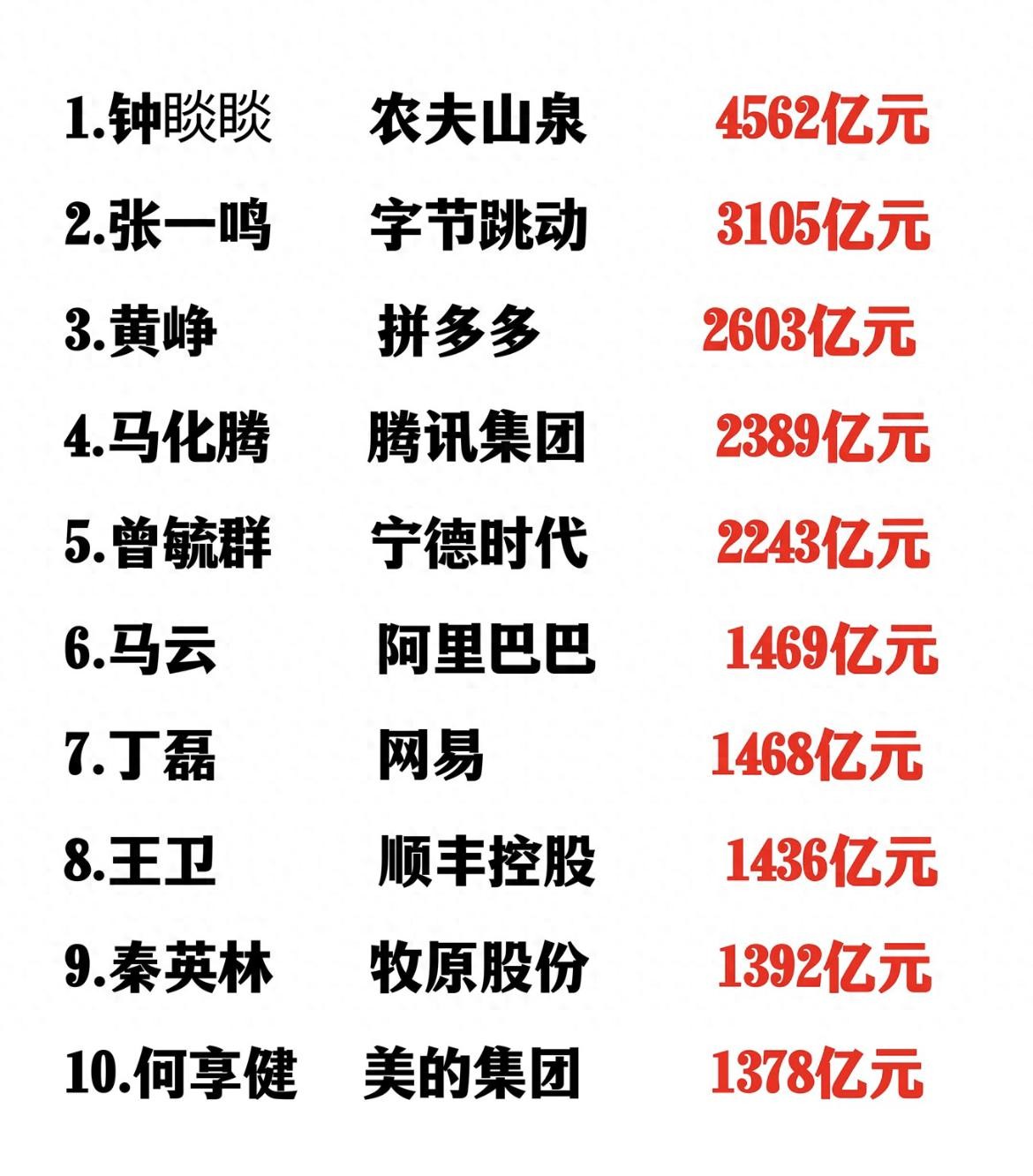 2024中国富豪榜排名出炉,农夫山泉再度登顶,马云跌出前五!