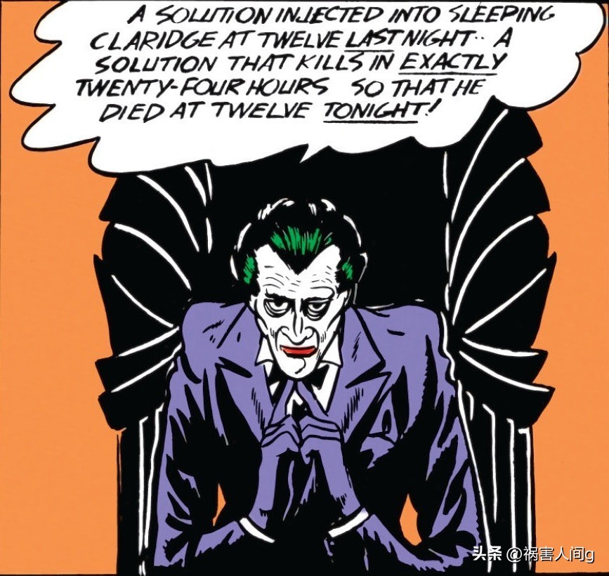 罪犯小丑的特征就跟小祸上一篇文章中介绍的黄金时代地球二的小丑一致,化学物品并没有损伤他的面部神经,他平时不苟言笑,犯罪手段非常残酷。罪犯小丑是名义上三个小丑的老大,另外两个小丑表面上都要听从他的领导。他应该是三个小丑中第一个诞生的小丑。