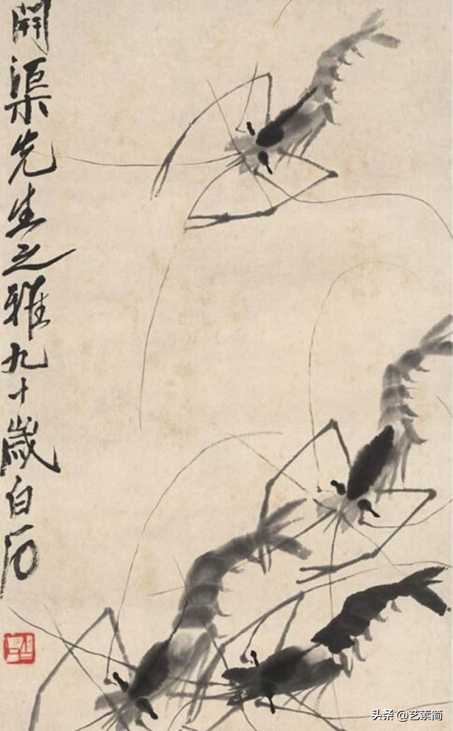但她的虾和她爷爷比,还是少了灵动,这种情况下落款处题上“白石孙女”的款,明显是底气不足,想借着爷爷的名头搏彩,这就难怪被人嘲笑了。