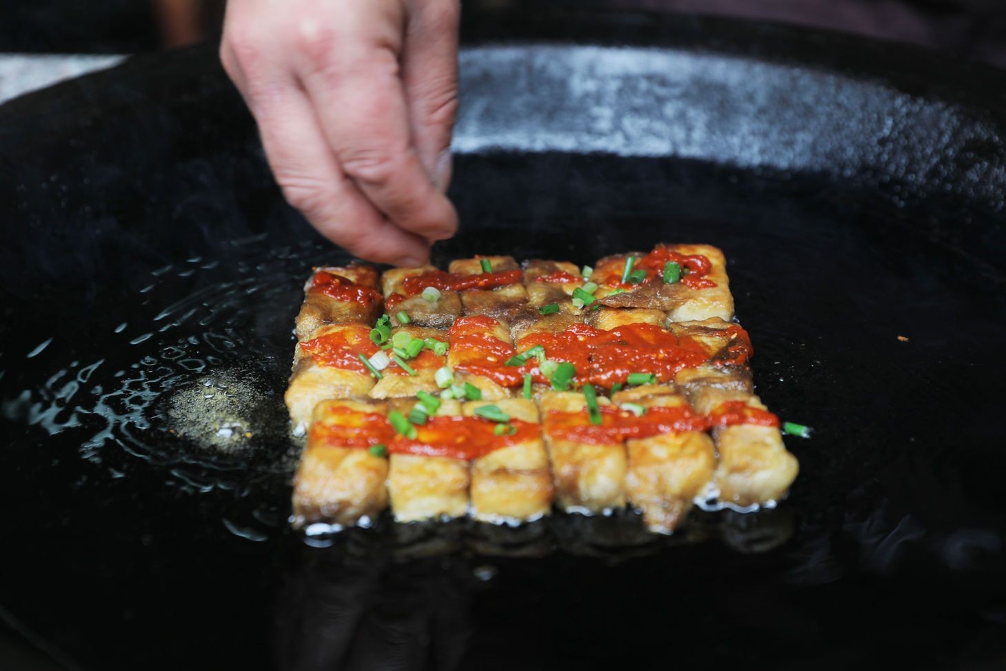 八公山豆腐又名四季豆腐,是安徽省淮南市的一种地方传统小吃,其晶莹剔透,白似玉板、嫩若凝脂、质地细腻、清爽滑利,无黄浆水味,托也不散碎。成菜色泽金黄,外脆里嫩,滋味鲜美。