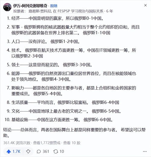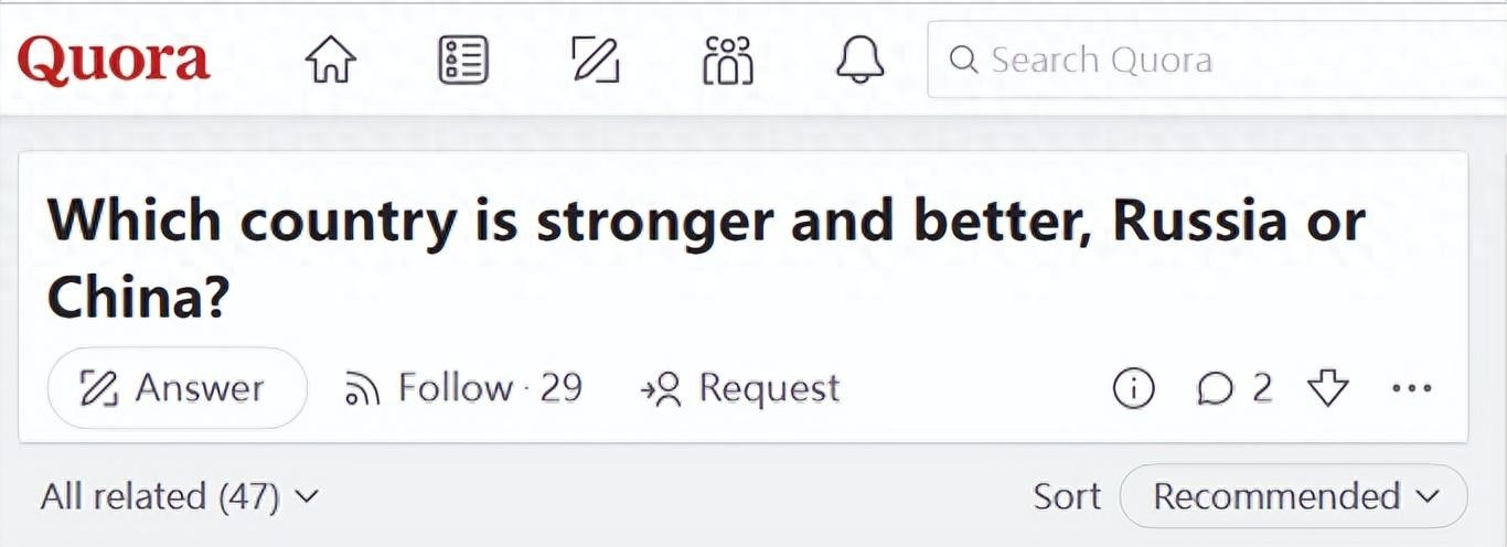 俄罗斯和中国谁更加的强大,这是国外最大问答网站上的一个问题,引来1700个网友的点赞,以及300个网友的评论。争议很大,接下来跟着黑桃的视角一起来看看吧。
