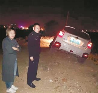 借着车灯的光,陈女士发现汽车竟然悬在一个池塘边,随时有翻下水塘的可能。惊魂未定的她一时无法自行施救,当即拿出手机报警求助。黄陂区公安分局天河派出所接警后,民警刘勇立即带领辅警颜帆等人赶赴现场,找到了在夜风中冻得瑟瑟发抖的陈女士。陈女士诉苦道:“我一直是按照导航走的……”