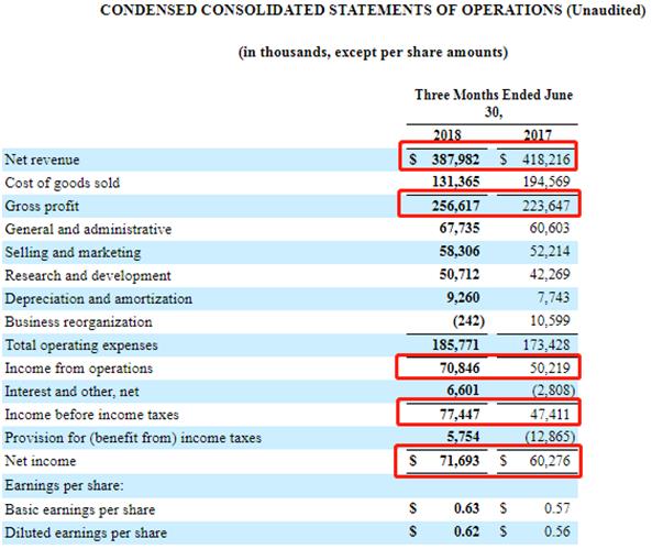 最新财报显示,公司每股盈利0.62美元,超过预期0.02美元;公司营收虽然同比下降,低于预期2863万美元,但是公司毛利同比增长14.74%,净利润同比增长18.94%。