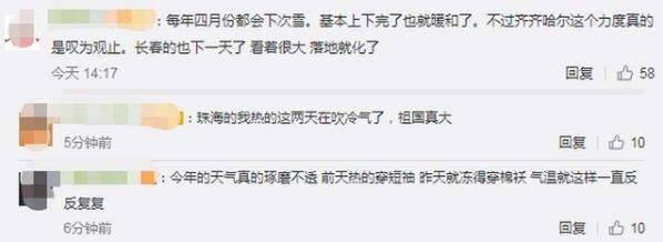 4月20日至21日,黑龙江、内蒙古、吉林多地突降暴雪。黑龙江省齐齐哈尔市发布暴雪红色预警。4月21日,有居民起床发现,自家门被积雪堵住,只能翻窗爬出。