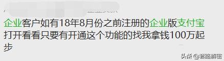 2020年初,在各微信群,QQ群,贴吧等总见到有一群人在疯狂在收购企业支付宝帐号,价格有几万,几十万,甚至上百万,为了打消卖家的担心,还承诺可以当百交易,办理过户等相关手续,好像只要你想卖,其他的都不是问题。看了很多收购信息,收购者都有一个共同的要求:必须有收发现金红包功能!一个正常的支付宝企业版功能为何如此值钱呢?
