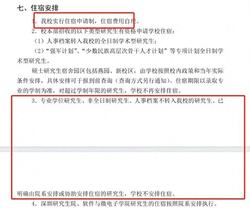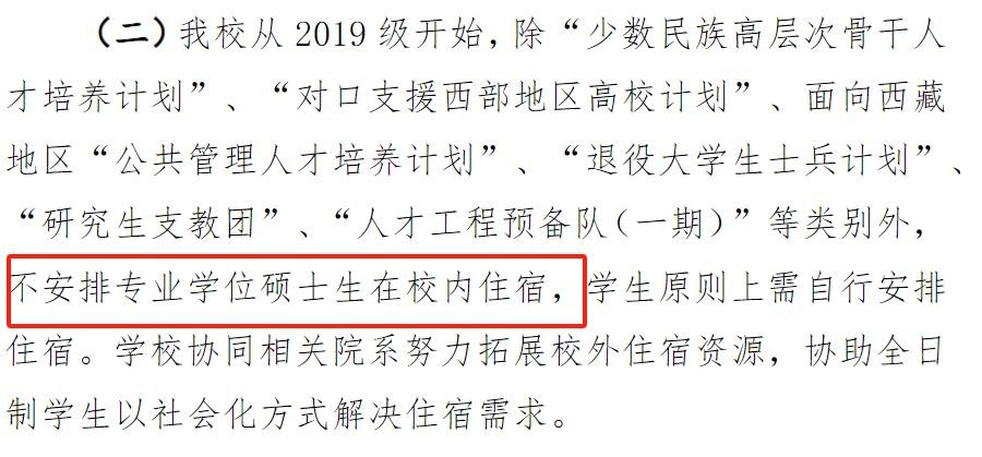 目前看来,多数院校都不给非全日制专硕提供住宿,少数院校是专硕不提供住宿。学硕目前还比较稳定,没有学校不给学硕提供宿舍。在专硕扩招的大趋势下,以后可能会有越来越多的院校不给专硕提供宿舍(不是不想,是学校实在没地方),这一点是以后考研的同学们要注意的。