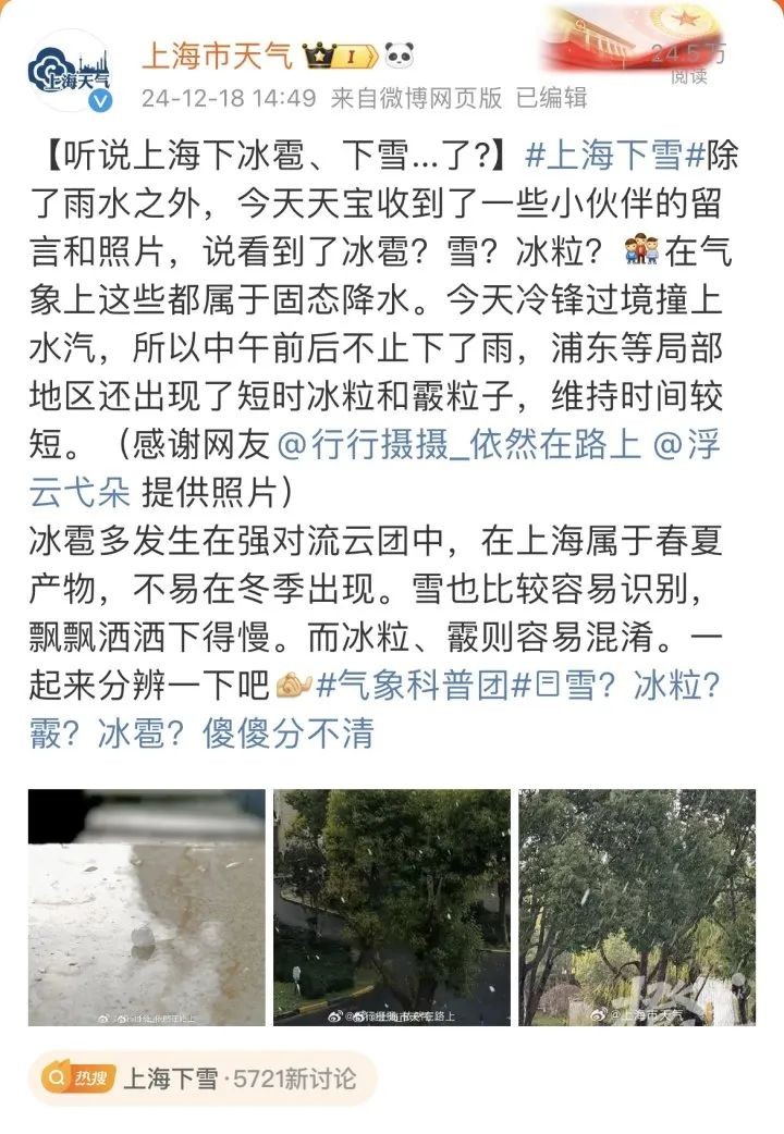 对此,上海气象台发文说,“今天冷锋过境撞上水汽,所以中午前后不止下了雨,浦东等局部地区还出现了短时冰粒和霰粒子,维持时间较短。”