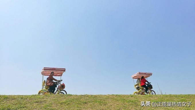 下船后租单车环岛骑行 。一人单车10元,2人单车40,4人单车40元,6人单车60元。也有电动单车,100元。