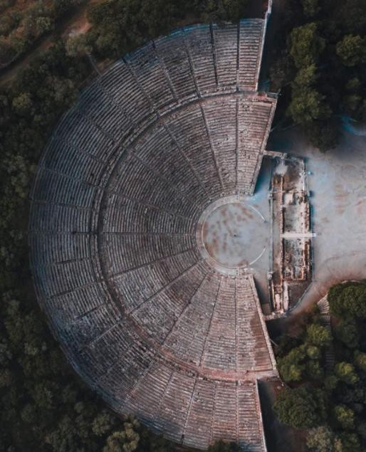 3.这是无人机从几百米高空拍摄的古希腊剧院,看上去十分的神秘。