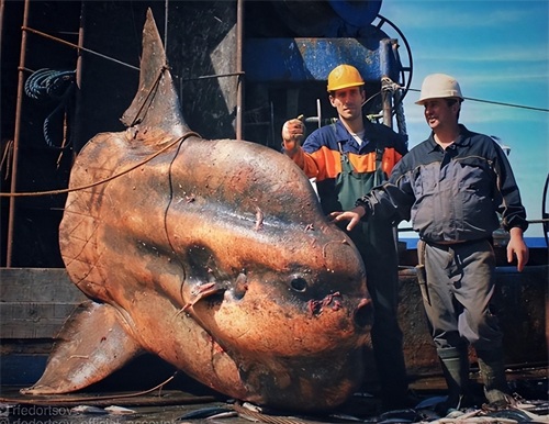 5. 这次在摩洛哥附近的大西洋捕鱼,意外捕获了一条巨大的翻车鱼。
