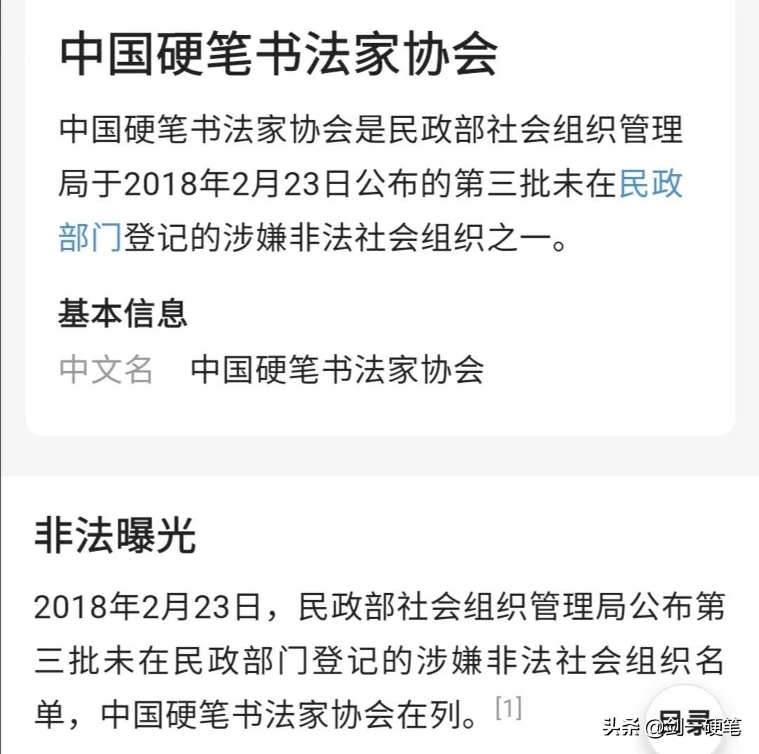 事实上,不带“家”的中国硬笔书法协会才是经国家文化部批准成立、国家民政部登记注册的国家级硬笔书法社团。而带“家”的中国硬笔书法家协会曾于2018年被国家民政部曝光为涉嫌非法的社会组织。