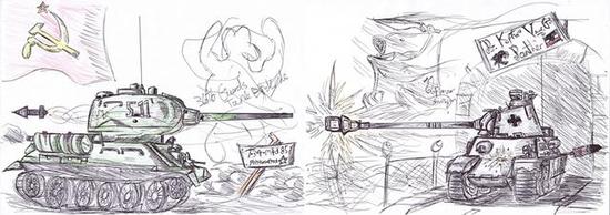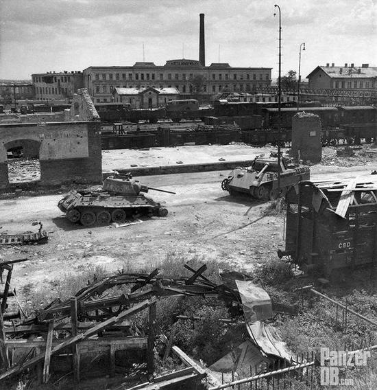 图片:一张风趣的照片,T-34和“乌豹”二具残骸面临于面的停在咫尺,不妨脑补猛烈战役时的场景。