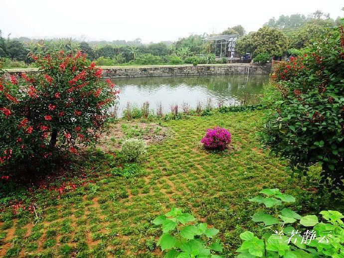 建筑群的正对面为荷花池,荷花池分为上下两个池,中间有一小堤可行人。