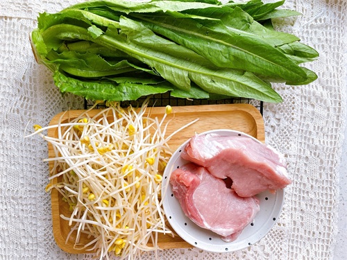 1、做水煮肉片需要原材料有3种,主料猪肉,配菜豆芽和油麦菜,具体的用量根据自己家里人的数量准备;