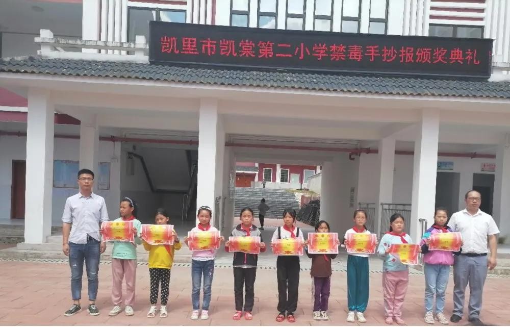 近日,市教科局组织凯里市第六小学、凯棠第二小学等学校开展了校园第一届禁毒手抄报比赛活动。同学们积极参与此次禁毒教育手抄报比赛活动,共覆盖两所学校31个班级、1500余名学生,经过学校评委教师严格认真的评比,两校分别评选出一等奖1名,二等奖3名,三等奖5名,并在“六一儿童节”当天对获奖学生颁发了奖品奖状。