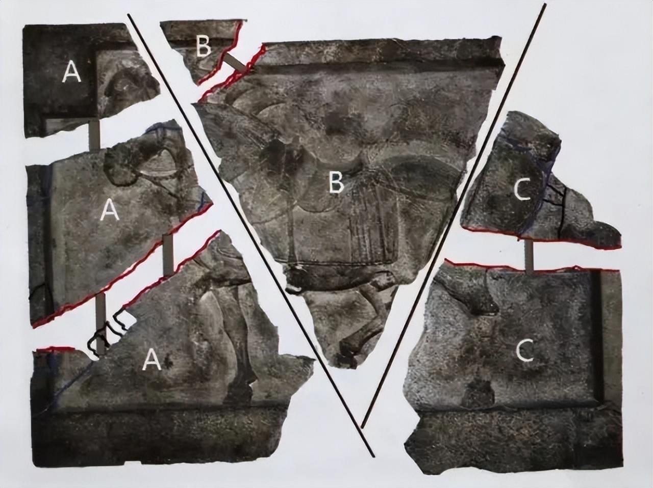 慌乱中,窃贼丢下“飒露紫”和“拳毛騧”的残片逃走。