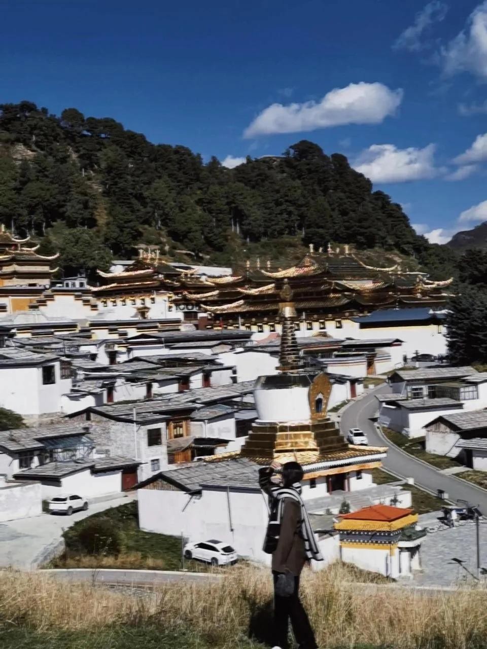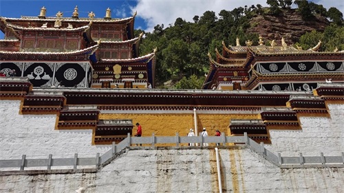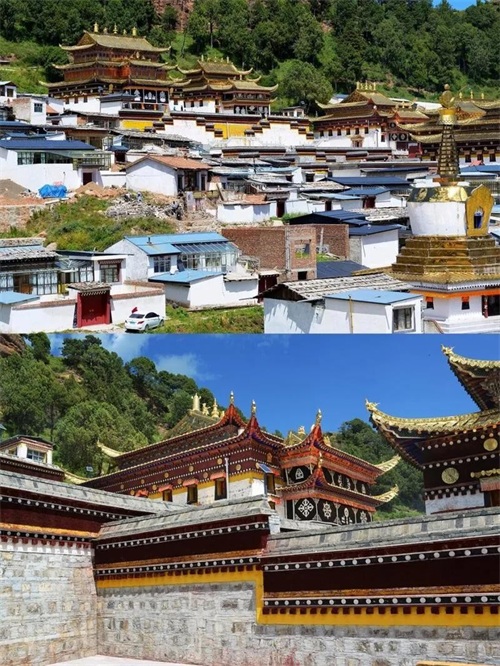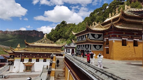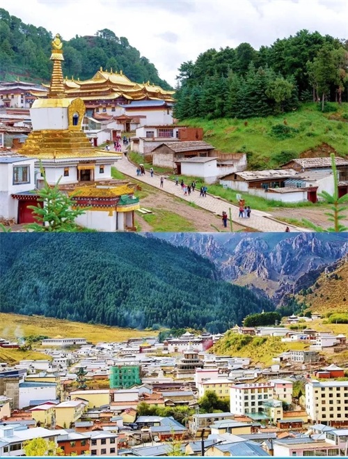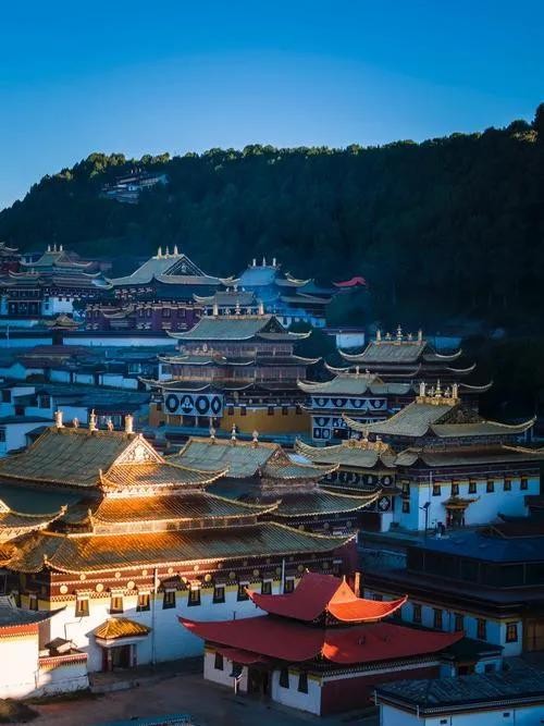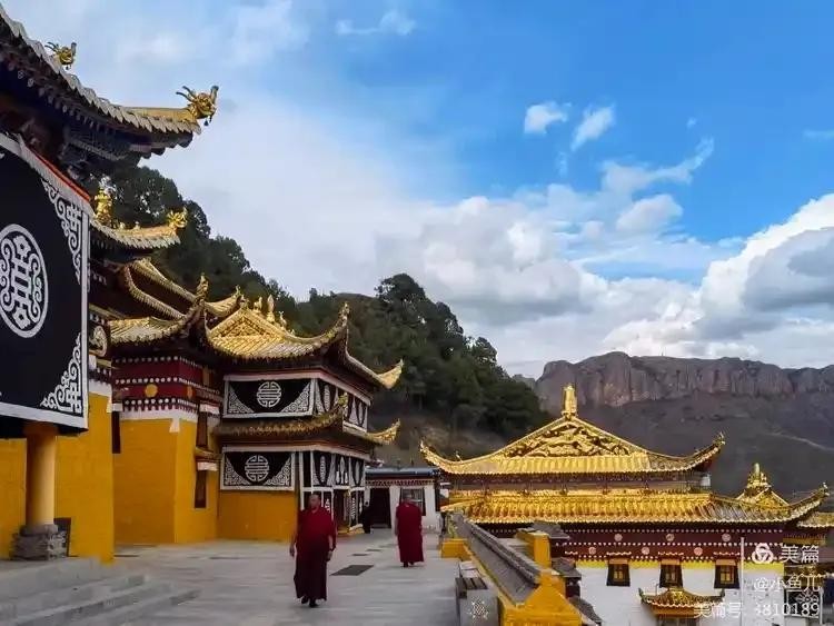 小镇上最不能错过的,当属那两座极具代表性的寺庙。位于甘肃境内的达仓郎木赛赤寺,建筑风格金碧辉煌,那一座座金顶在阳光的照耀下熠熠生辉,彰显着藏传佛教的神圣与庄严。
