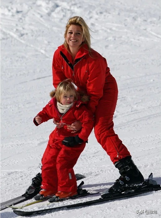2009年,荷兰王后马克西玛在一年一度的奥地利滑雪节上,给女儿亚历克西娅公主做了一次滑雪示范。