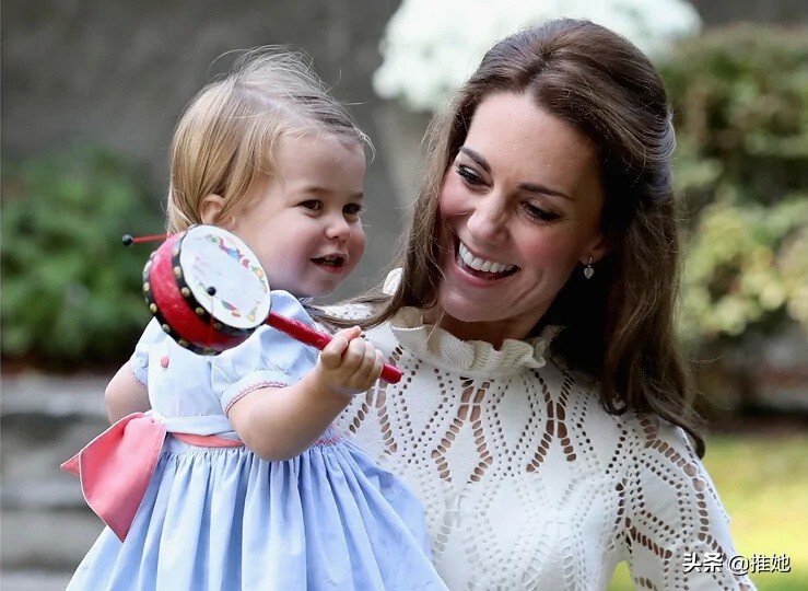 凯特在2016年加拿大皇家巡游期间,抱着女儿夏洛特公主在玩拨浪鼓演奏乐器时太开心了