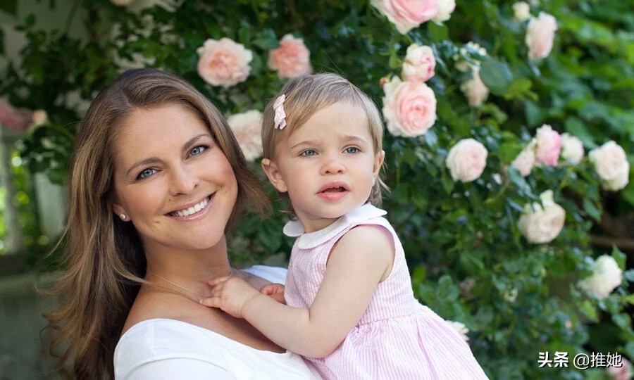 2015年,玛德琳公主和她的小女儿莱昂诺尔公主在粉红玫瑰前合影。