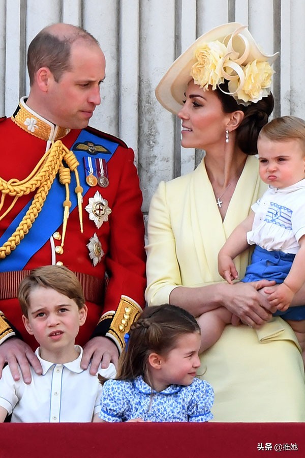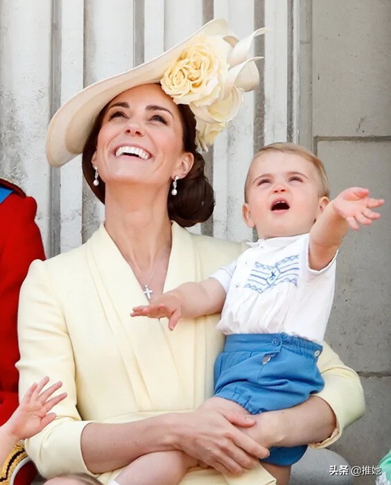 剑桥公爵夫人最小的孩子路易王子在2019年穿着打扮得很可爱,他把手伸向天空时,紧紧拥抱着妈妈。