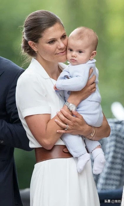 2016年在瑞典奥兰,瑞典王储维多利亚在生日庆典上紧紧搂着她的男婴奥斯卡王子。