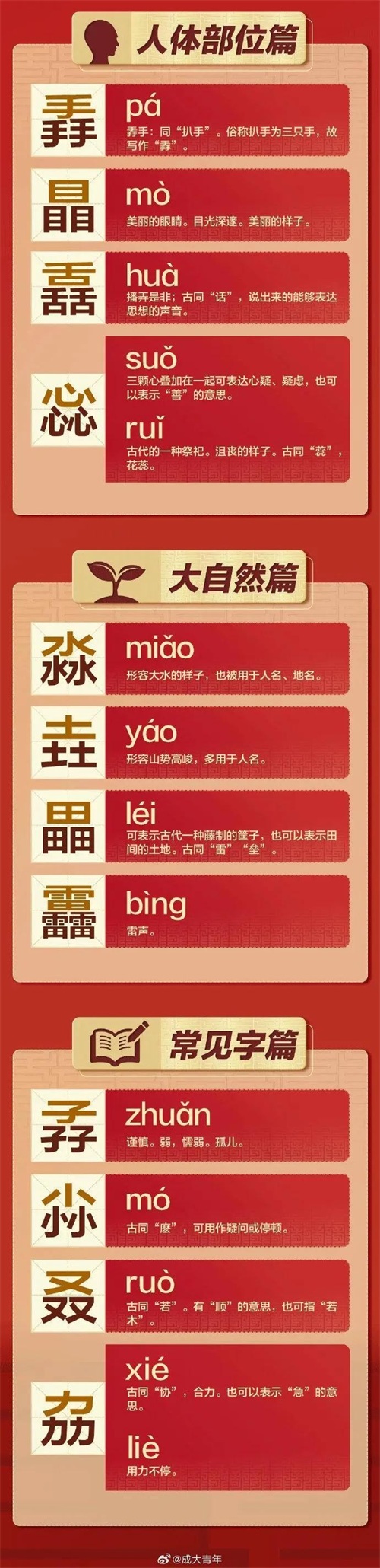 其次,“三重叠”的书写难度非同小可。如今多数人连单个繁体“龍”都未必能写得溜顺自然,更别提要将三个堆放在一起。如此高难度动作并非每位汉字爱好者都能轻松完成。