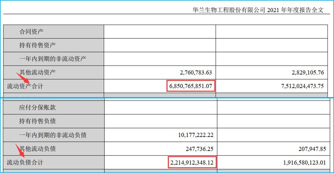 案例:华兰生物2021年的流动比率