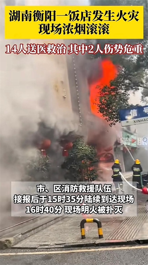 湖南省衡阳市珠晖区东风路香悦食府火灾事故震惊了整个社会。2月15日下午,一场突如其来的火灾在该餐厅发生,导致100余平方米的面积被烧毁。当时,衡阳市和珠晖区的消防救援队伍接到报警后迅速赶到现场,在紧张而有序的救援下,于16时40分将明火成功扑灭。