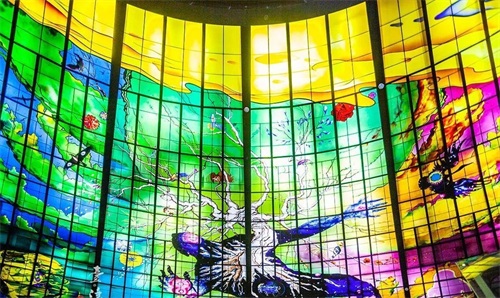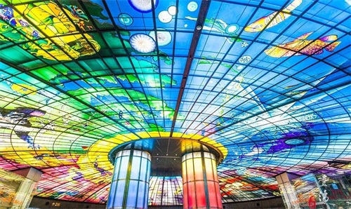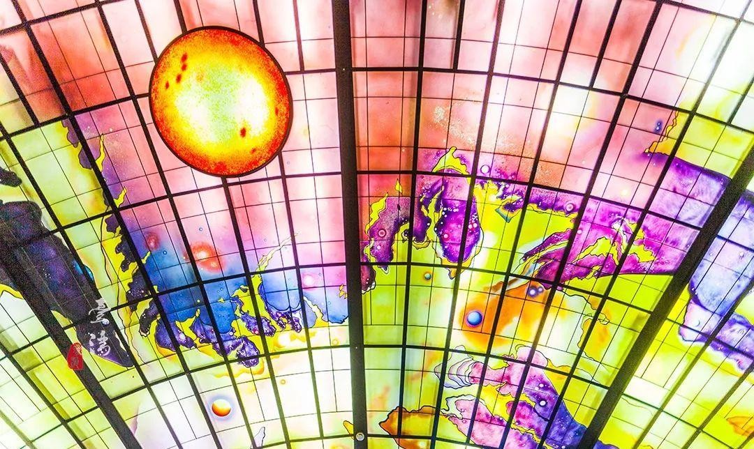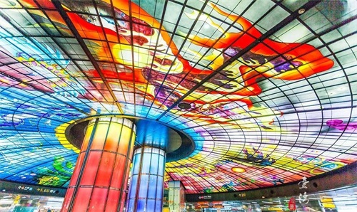 美丽岛捷运站是台湾两条捷运线交汇的主要站点,也是全球最大的圆形车站之一,以其"光之穹顶"而闻名。这个穹顶由著名艺术家设计,耗时四年,由4500块玻璃组成,直径约30米,是世界上最大的玻璃拼贴艺术品之一。穹顶分为四个区域,各自拥有独特的主题。美丽岛捷运站旁边就是六合夜市。