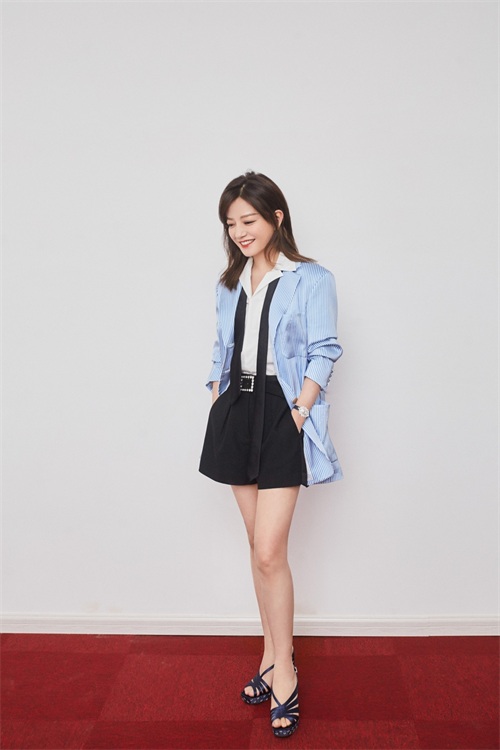 这种西装外套搭配短裤的穿法其实是很韩系的,很多南韩女爱豆都很热衷于这种组合方式。长发披肩的赵薇画着比较清淡的妆容,岁月好像并没有在她脸上留下什么痕迹,站在人群里仍然是最亮眼的存在。不得不说,赵薇穿衣很聪明,蓝色白色浅色系的搭配,显得人很年轻,同样是43岁,赵薇看着明显更年轻的感觉,穿衣真是一门学问啊。