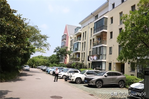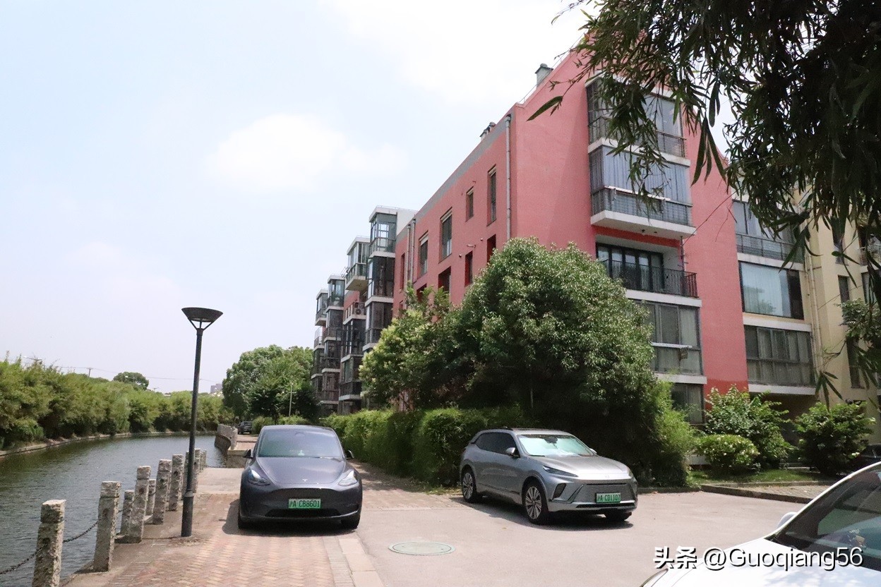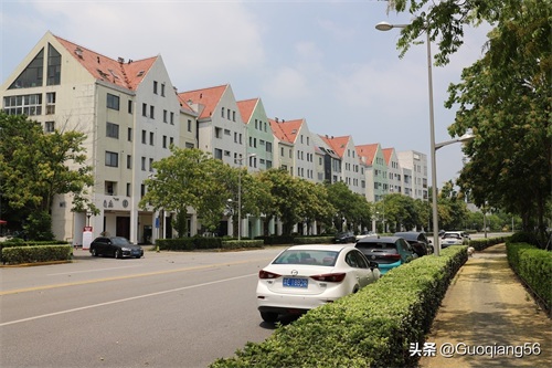 这个安礼德国小镇的旁边就是一条护城小河,小区里十分安静,许多的私家车停放在那里,还看到有人在小河里钓鱼。安礼路225号旁边的马路上,看见一些有德国建筑风格的房子,一排排三角顶的建筑风格,只是这个三角屋顶斜度有些大,形成了这里建筑的一种德国风味。