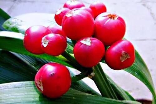 浆果球形,初为绿色,成熟时红色。1个果实具钟子1-40粒,白色。