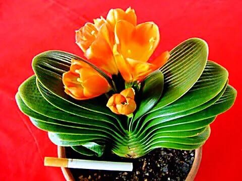 君子兰按开花的方向可分成两类:上花君子兰(大花君子兰)和下花君子兰(垂笑君子兰)。