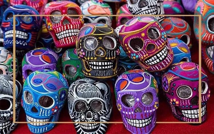 说到习俗那这里比较特别的就是非亡灵节莫属了,万寿菊,骷髅文化在很多地方都存在,例如外墙涂鸦,树上画画,房屋装饰,商品都有展现!
