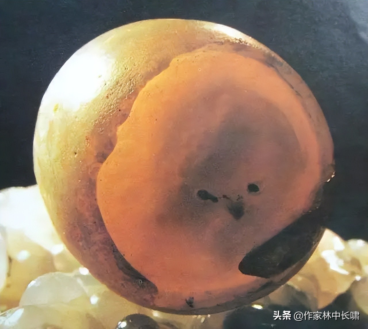 这就明白无误地告诉我们:“小鸡出壳”是一块天然的玛瑙石巧雕而成。它不符合奇石的定义,因此不是奇石,而是观赏石中精巧绝伦的工艺石!其形成过程,不完全是大自然的鬼斧神工,而是像玉雕、牙雕、木雕、根雕一样加入了人工元素。