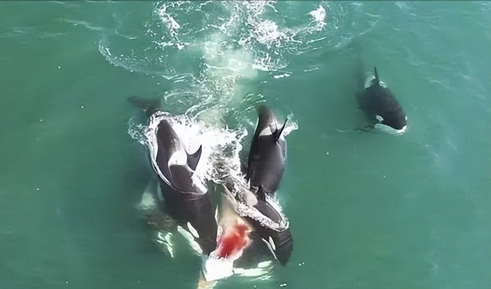 但是小须鲸也不愿意停在原地等待死亡,便主动对虎鲸发起了攻击,小须鲸使了全身的力量也没对虎鲸造成一丝一毫的伤害。虎鲸看着眼前这待宰的小羔羊,二话不说发起攻击,面对虎鲸种群的攻击,孤身一“人”的小须鲸很快便败下阵来,身上被虎鲸咬的遍体鳞伤,全身上下都是滚烫的血,水中散发出的血腥味很快引来了很多海鸟的围观。