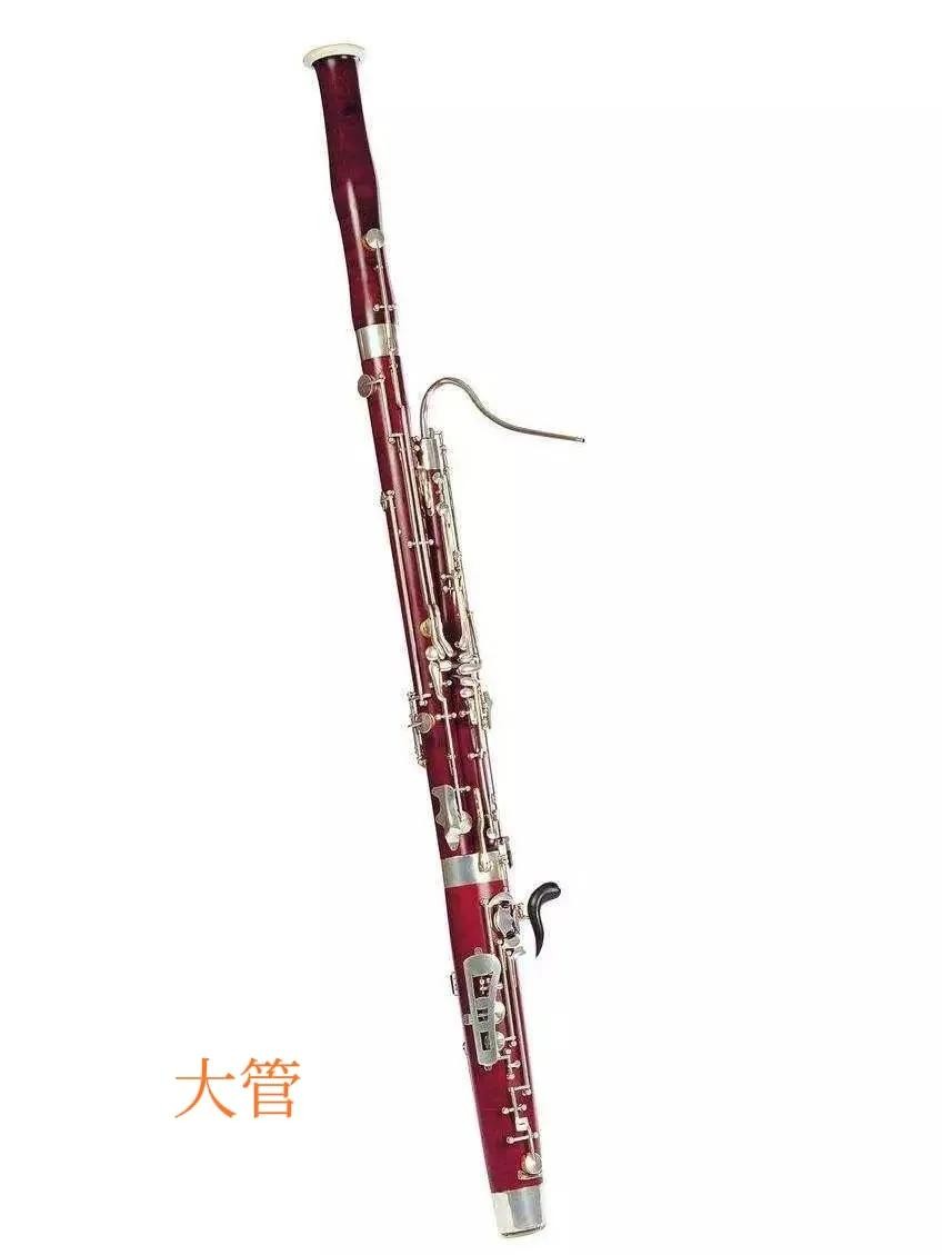 大管也叫巴松,木制,以双簧哨子发音,属C调乐器。