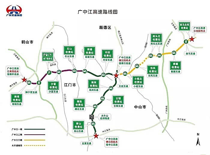 接着是佛江高速,佛山到江门的南北走向高速公路,覆盖顺德西部和中山西北部,江门东部等地区。